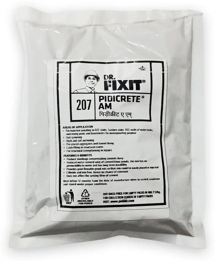 Dr. Fixit Pidicrete AM is composed of plastisizers, expansion additives, polymers & defoamer. It is used for producing cementitious injection grouts for pressure / gravity injection into concrete structures, for producing cementitious grouts, which are suitable for bed grouting, duct grouting, filling etc. because it provides plastisizing action which improves flow, expansion additive provides shrinkage compensation after curing & high compressive strength.