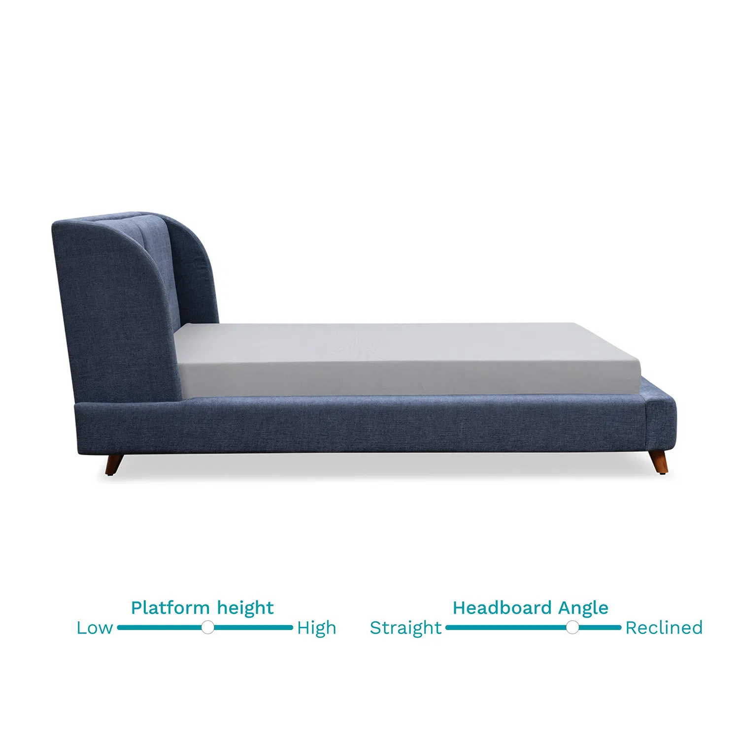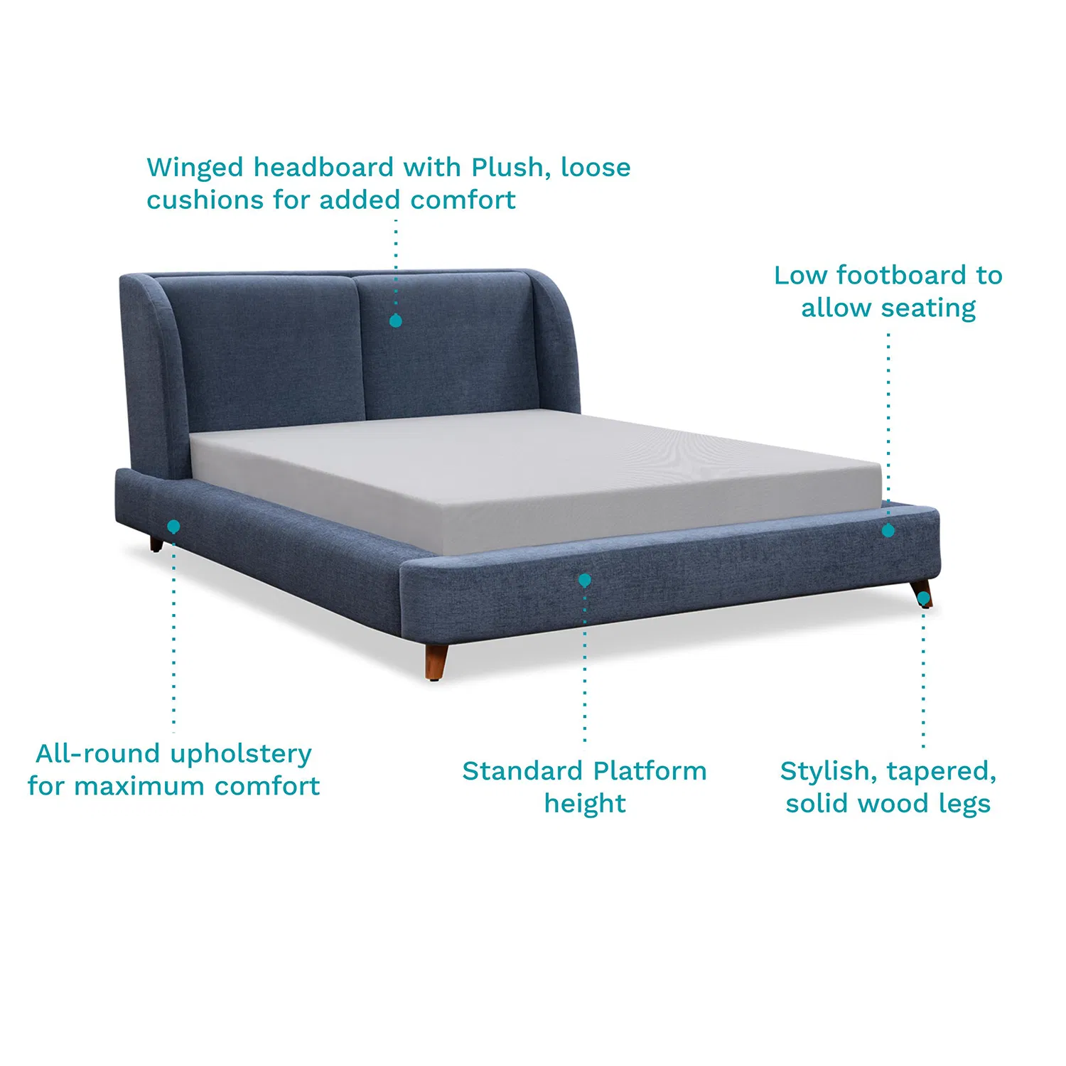 Furlenco | Mojave Upholstered Queen Bed, Mattress & Ella 3 Seater Sofa in Moroccan Blue