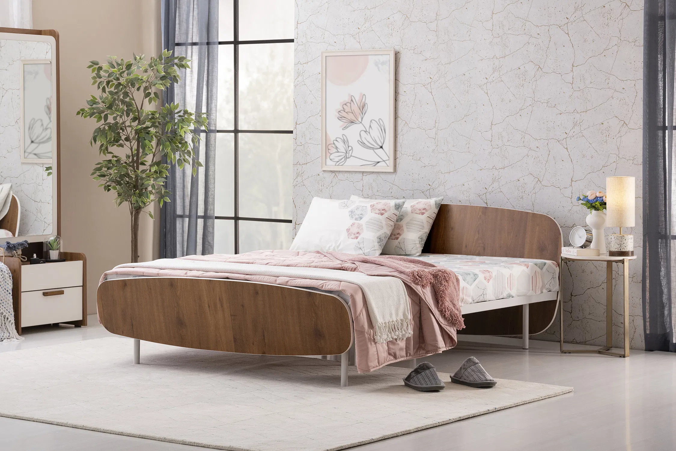 Rent the Blanca Queen Bed – Do you like your rooms looking like a work of art? Well, here is a statement piece that follows all that’s in vogue and more! It features a combination of wood grains with solid colours – a trend that’s taking the interior design world by storm! You’re sure to sigh in appreciation for its perfect pairing of wood and white.