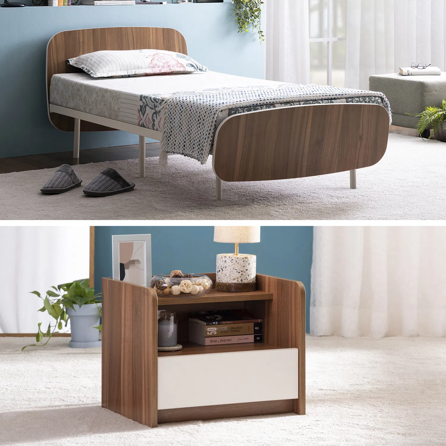 Rent the Blanca Single Bed – Do you like your rooms looking like a work of art? Well, here is a statement piece that follows all that’s in vogue and more! It features a combination of wood grains with solid colours – a trend that’s taking the interior design world by storm! You’re sure to sigh in appreciation for its perfect pairing of wood and white.