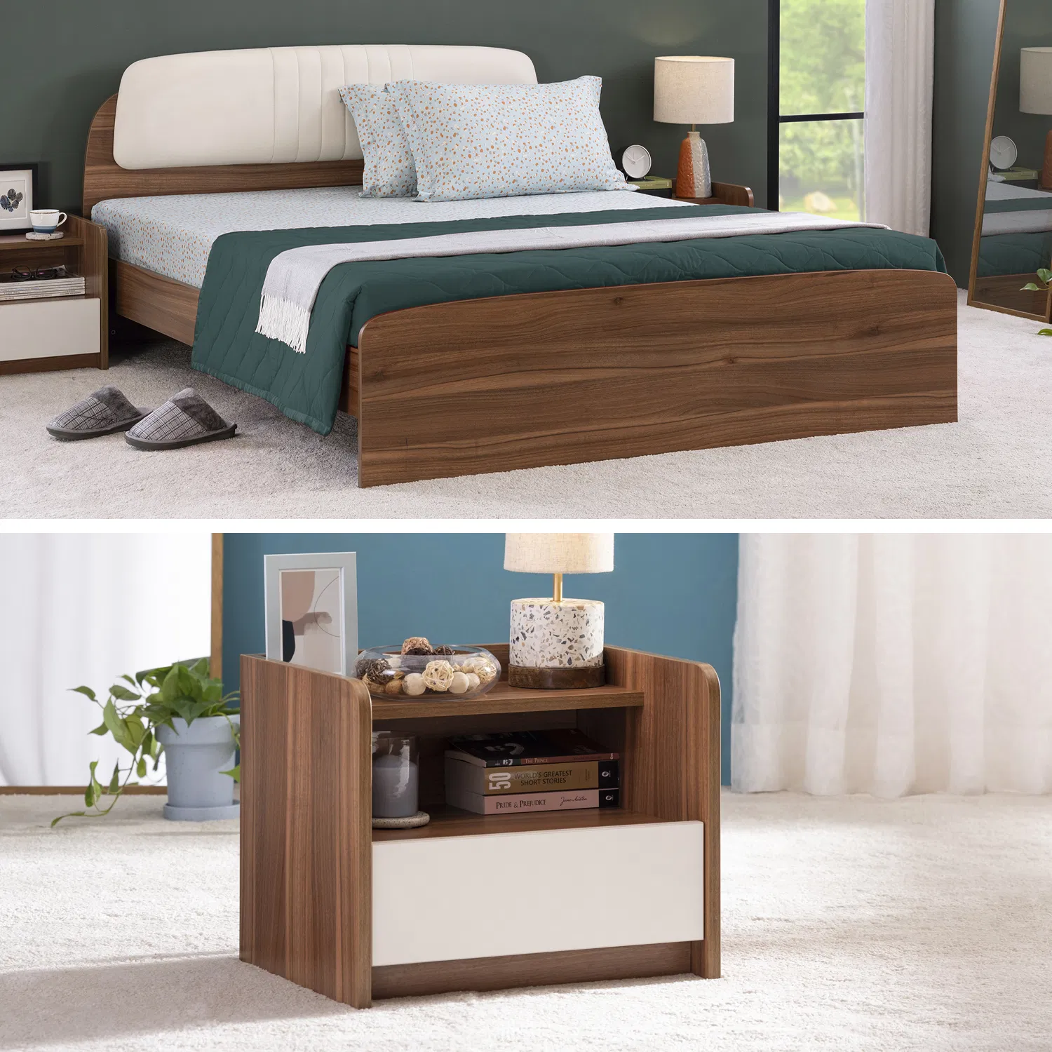 Furlenco | Dune Queen bed, Mattress with Bianca Bedside Table