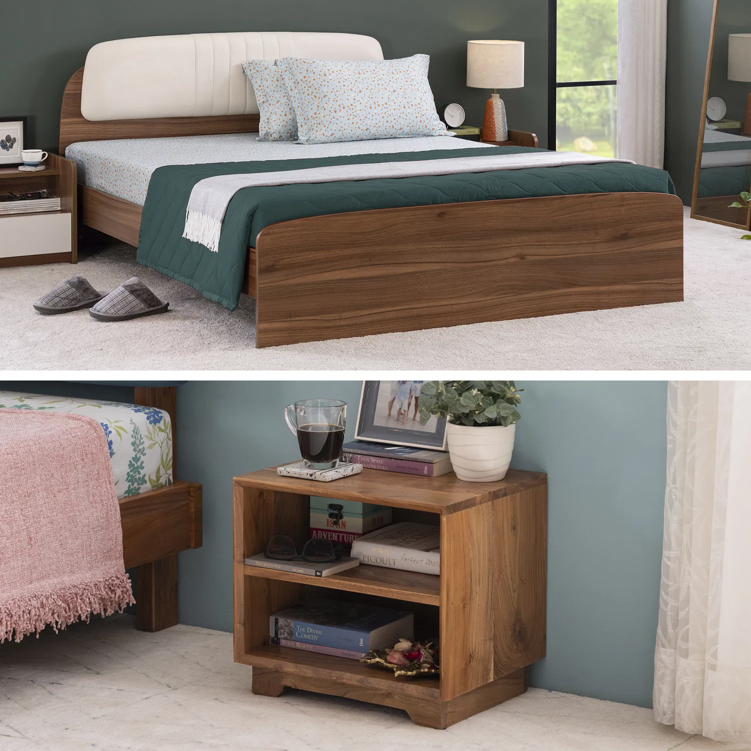 Furlenco | Dune Queen Bed, Mattress with Hako Bedside Table