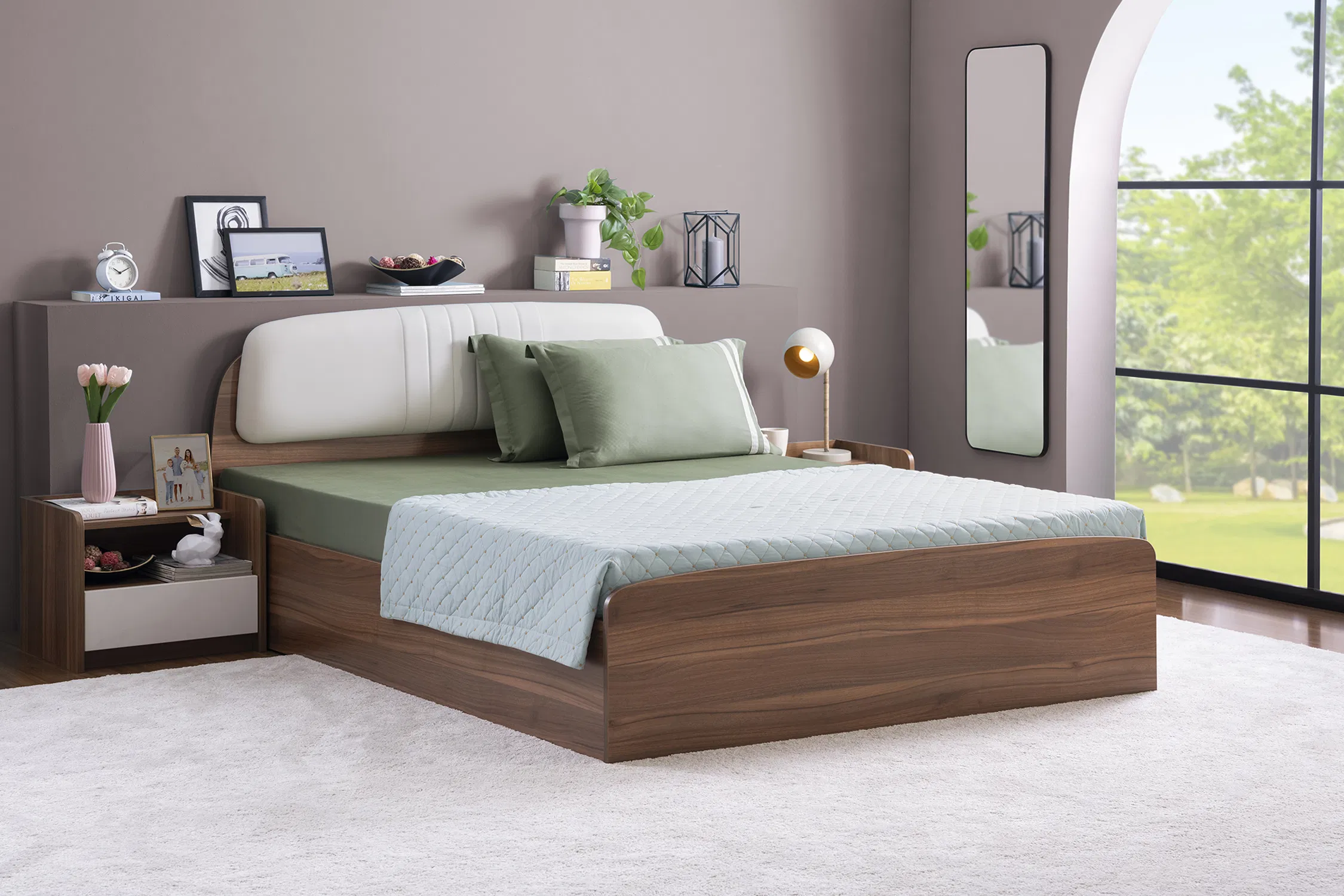 Rent the Dune Queen Bed – Do you like your rooms looking like a work of art? Well, here is a statement piece that follows all that’s in vogue and more! It features a combination of wood grains with solid colours – a trend that’s taking the interior design world by storm.