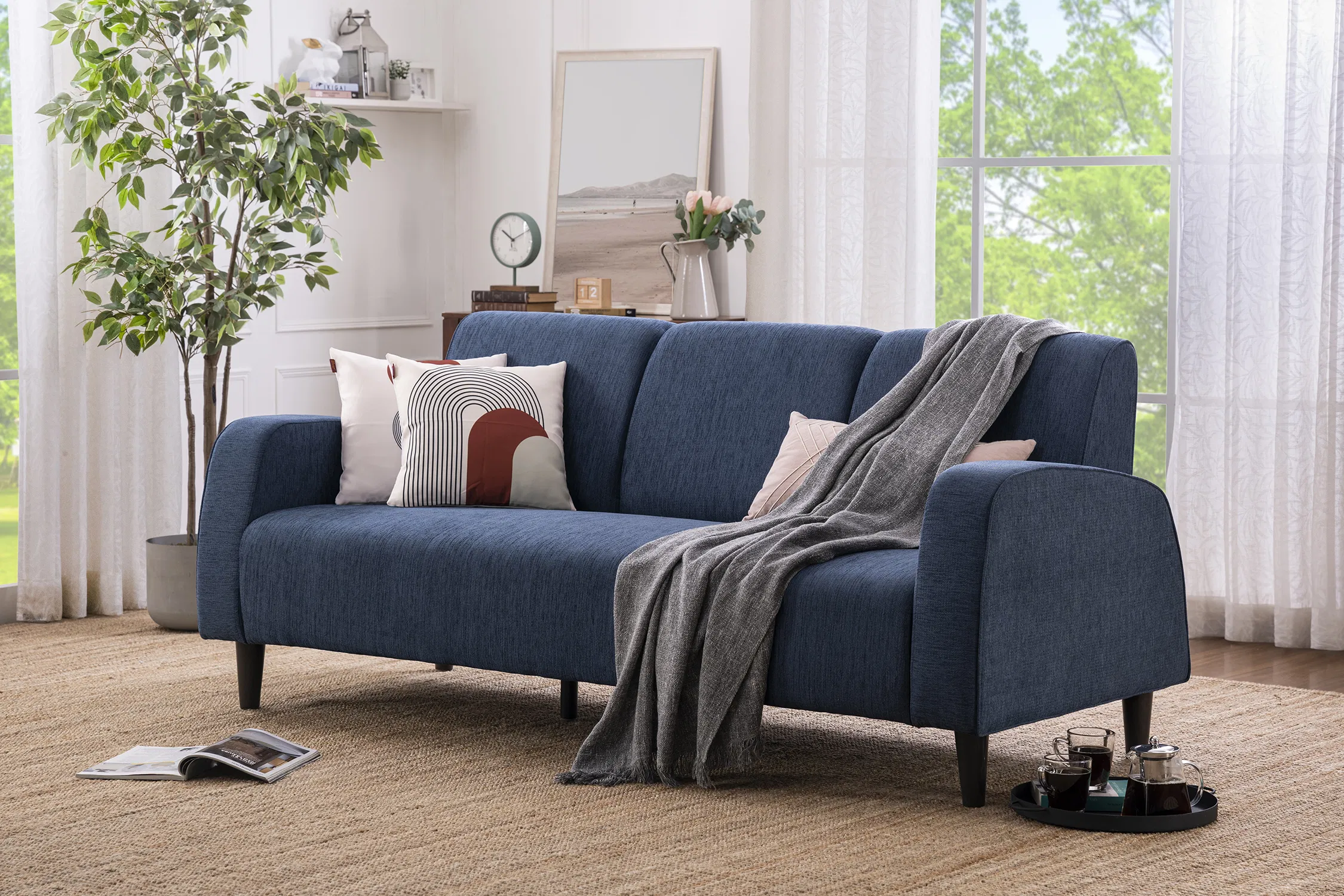 Rent the Ella 3-Seater Sofa – A couch for three. The Ella 3-Seater Sofa is a comfortably upholstered fixed-back sofa that wins praise for both looks and comfort. Designed with an ergonomic backrest that makes it a treat to sit on while you tune in to your next binge series, it adds value to every room it’s placed in. Standing tall in an exquisite stance, it catches the eye while also being visually light and plush. The design is retro and blends into a variety of settings and decor schemes.