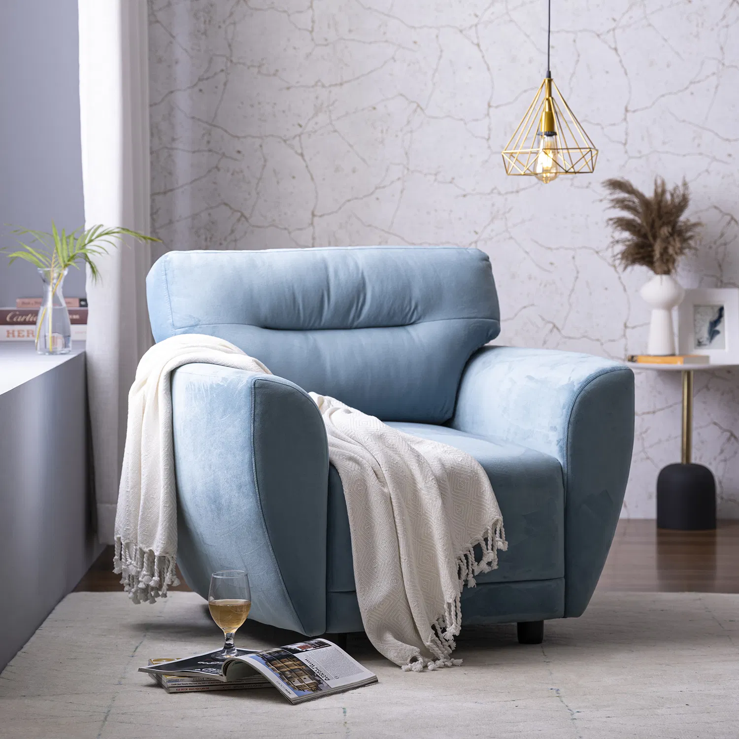 Furlenco | Elvis Velvet 1 Seater Sofa in Mineral Blue Color