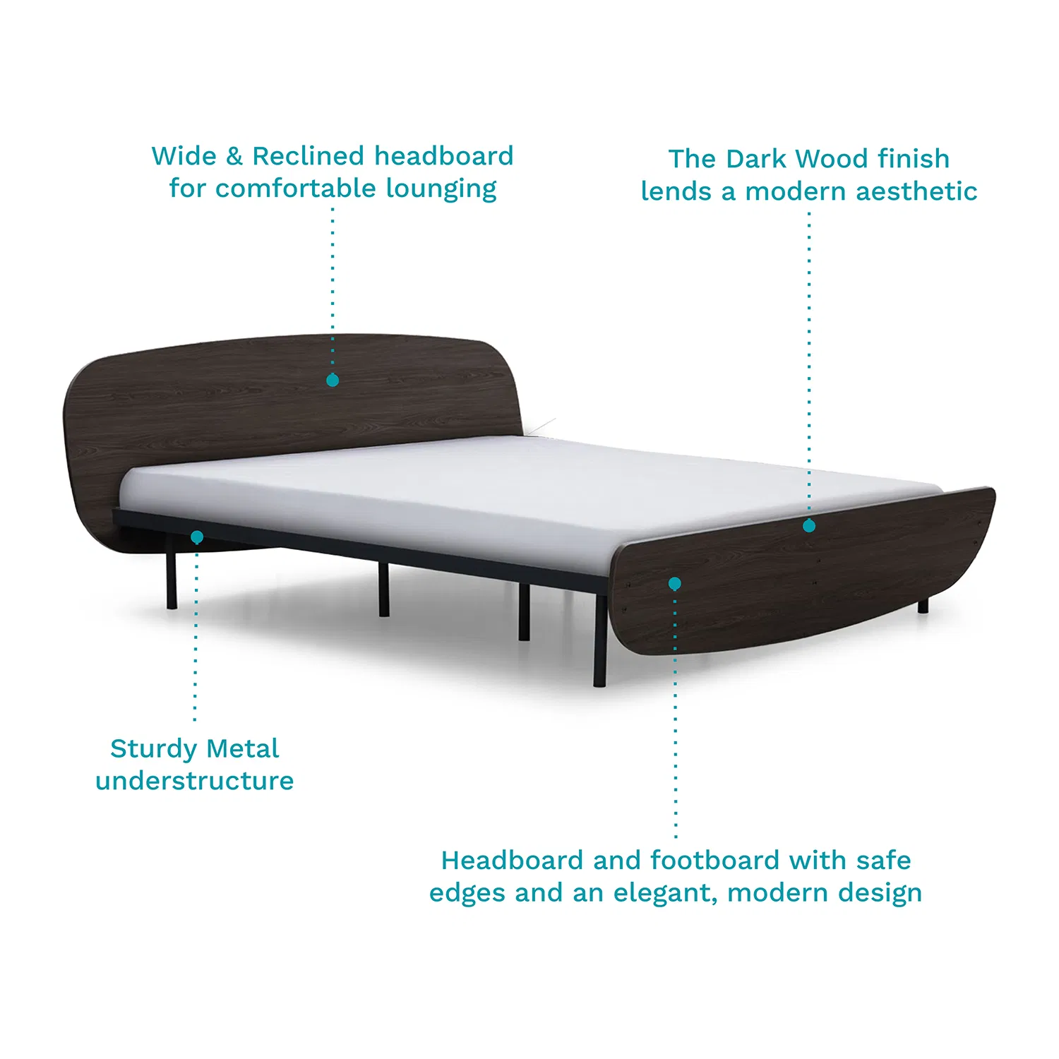 Rent the Haimish King Bed – Let out a satisfied sigh as you walk into your room, even if it’s for the millionth time with the sophisticated appearance of the Haimish king bed. Its minimal edge form is inspired by the world-renowned Scandinavian design aesthetic. Not only that, it is sleek, modern, and created with a tasteful combination of dark wood and grey metal to uplift rooms of all sizes.
