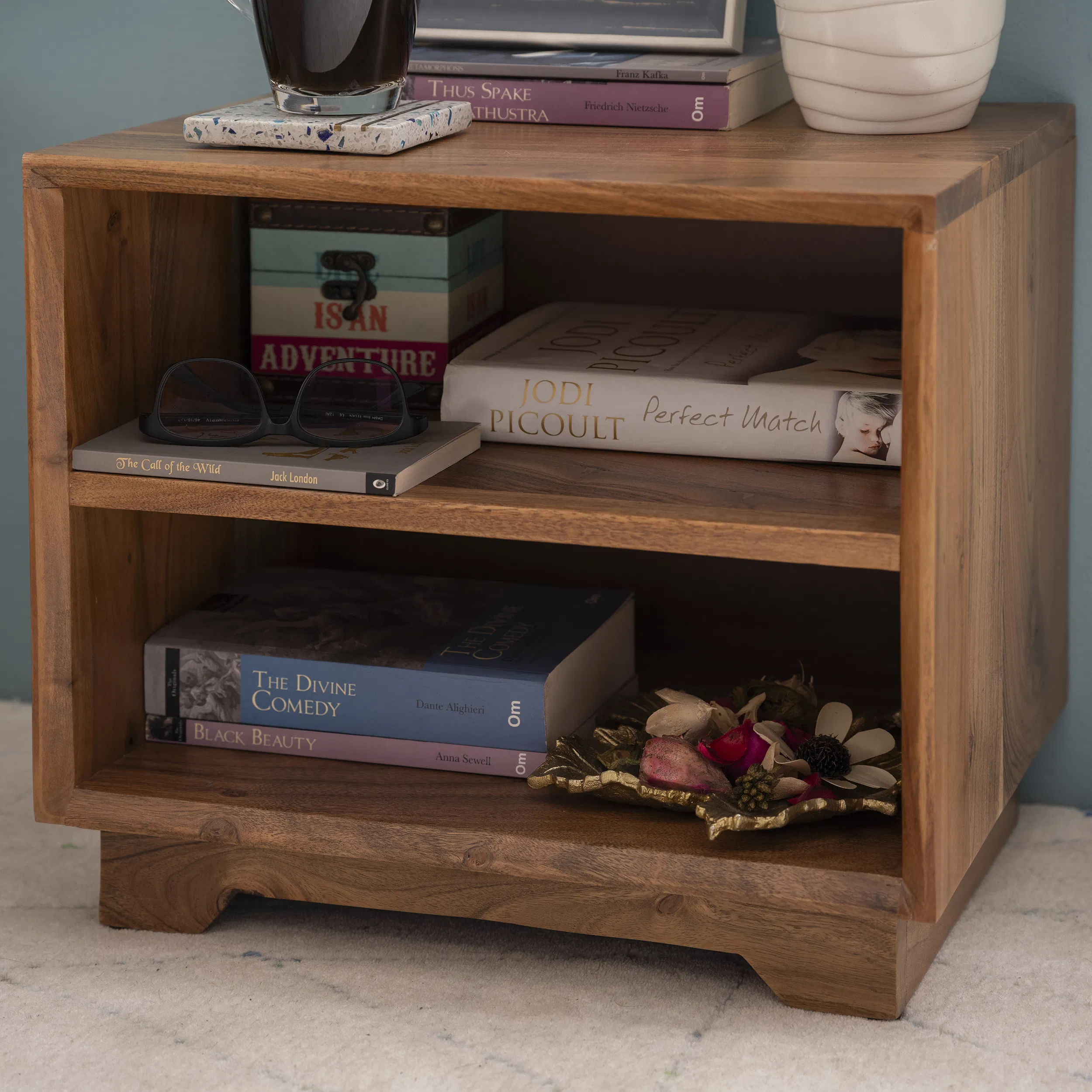 Rent the Hako Bedside Table, a compact wooden bedside table designed for convenience and style. It has two open shelves for easy-access storage and a clean top that offers the perfect spot for your favourite books, decor, or nighttime essentials. It features miter-cut edge details, making it supremely user-friendly, and it’s stylish finish makes it a perfect addition to any room.