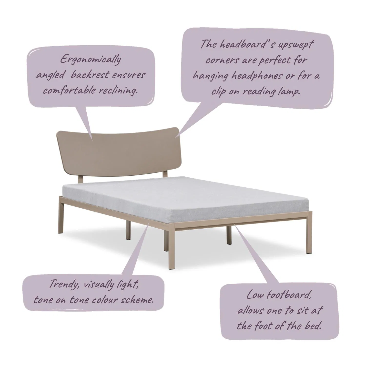 Rent LIT bed. This bed offers a trendy look with a minimalistic tone that complements your bedroom. It has a robust metal structure with upswept corners that can be used to hang headphones or clip reading lamps. As the name suggests, this bed will add a LIT vibe to your bedroom.