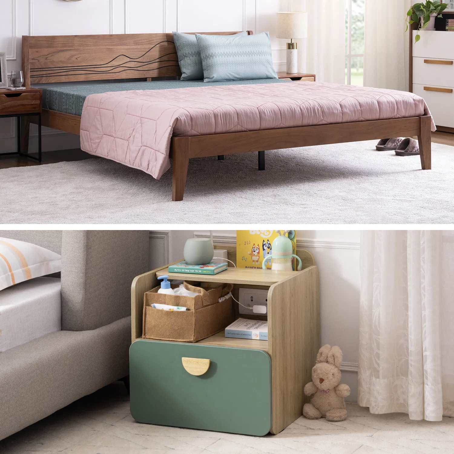 Furlenco | Mojave King Bed, Mattress & Momkin Bedside Table