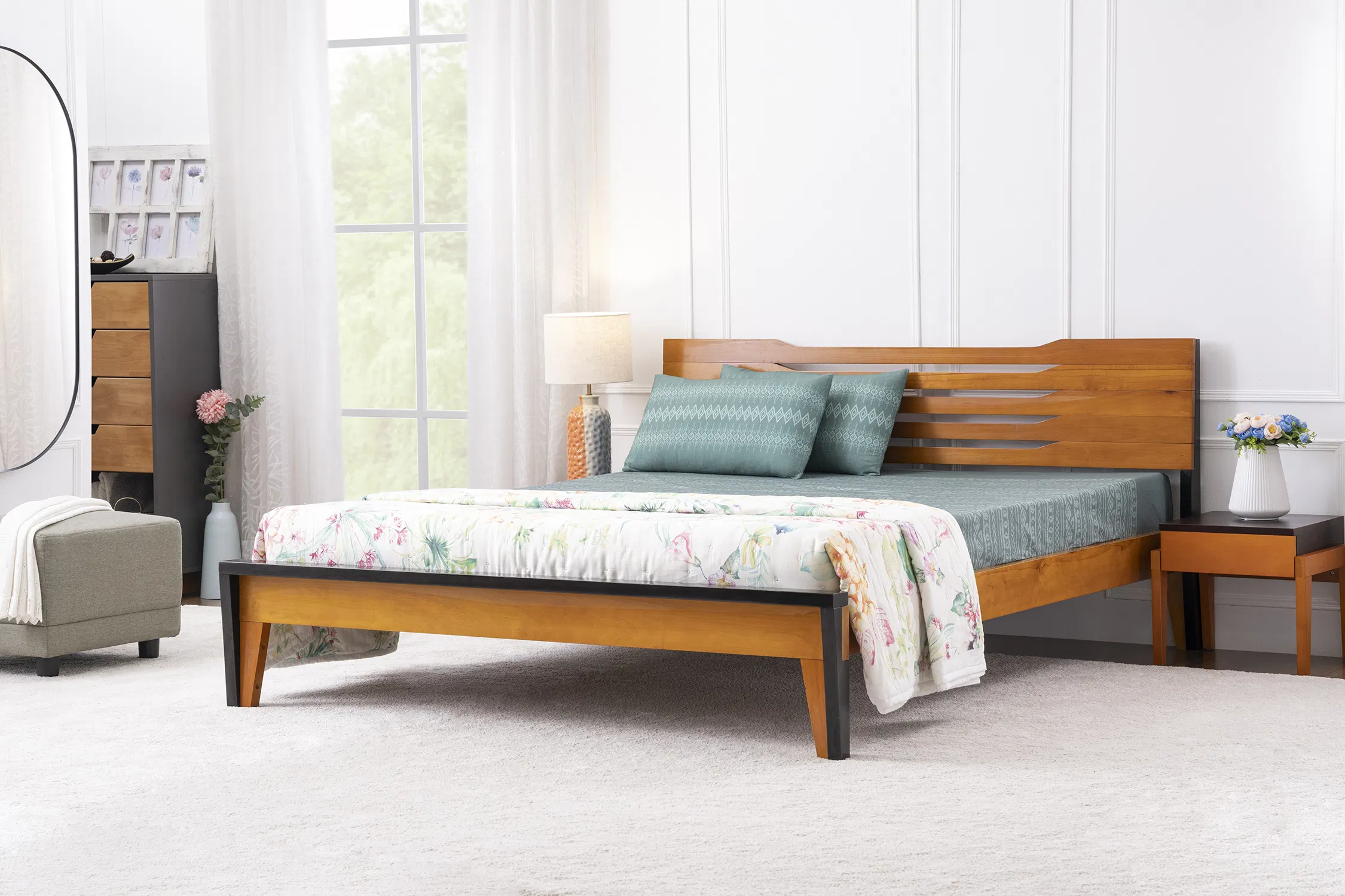 Rent the Pico Queen Bed – Uplift your room within seconds with the sophisticated Pico Queen Bed. Made with serious thought into the requirements of an Indian household, it is the definition of sturdiness and durability. Also, once assembled it enhances the look of any room with its ability to go with almost all decor schemes. Whether it’s your grandparent’s antique collection or a hip room for millennials, this bed is designed to look good no matter where it goes.