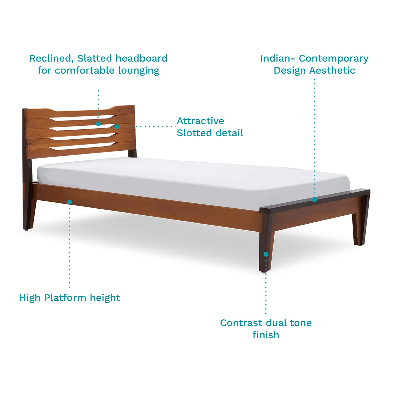 Rent the Pico Single Bed – The Pico Single Bed is a breath of fresh air and convenience as it’s designed keeping Indian sensibilities in mind. Each material used is chosen to maintain the highest standards of durability and sturdiness. Even after this, it retains a contemporary look that can enhance any sort of space or decor scheme. What’s the most interesting aspect about it is the horizontal slots on the headboard, and the unmissable dual-tone finish.