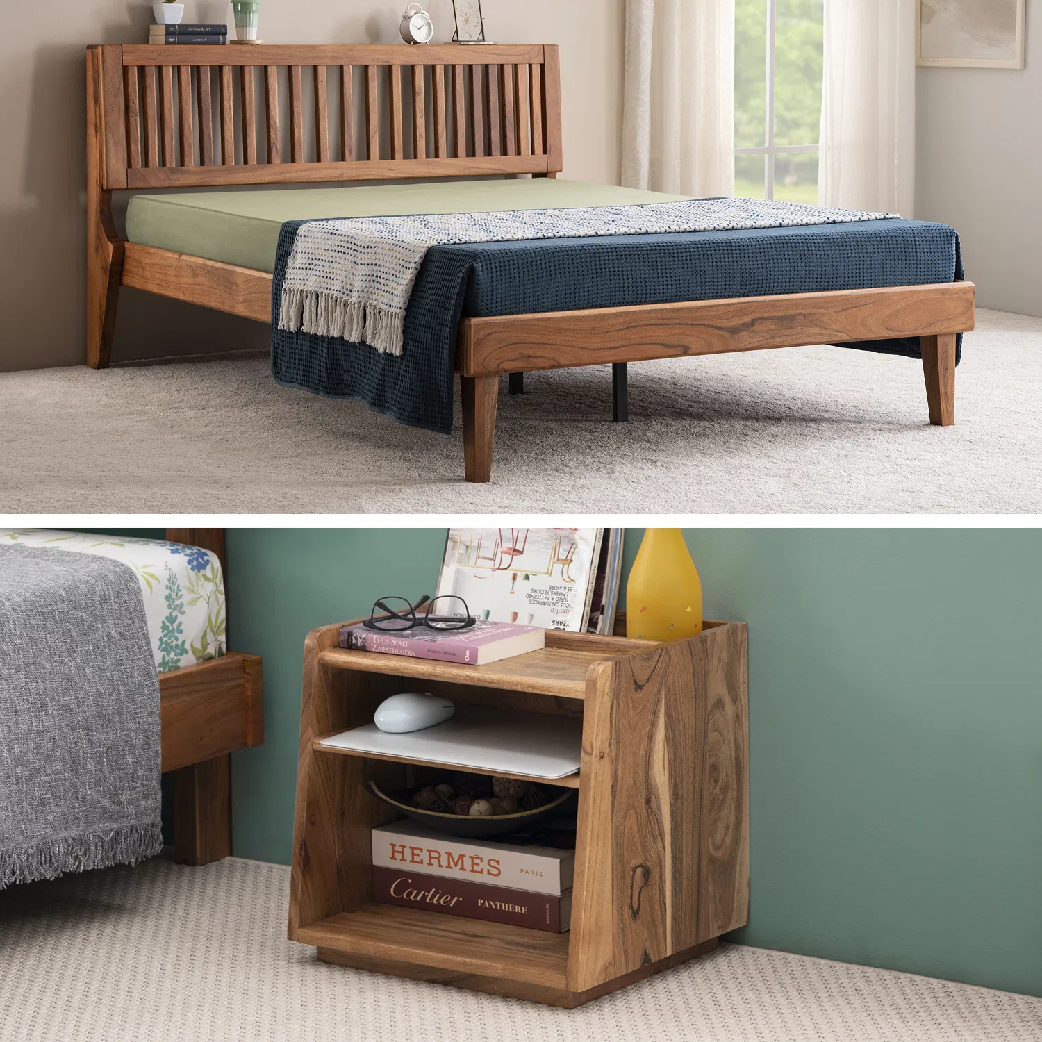 Furlenco | Sara Queen Bed, Mattress with Taki Bedside Table