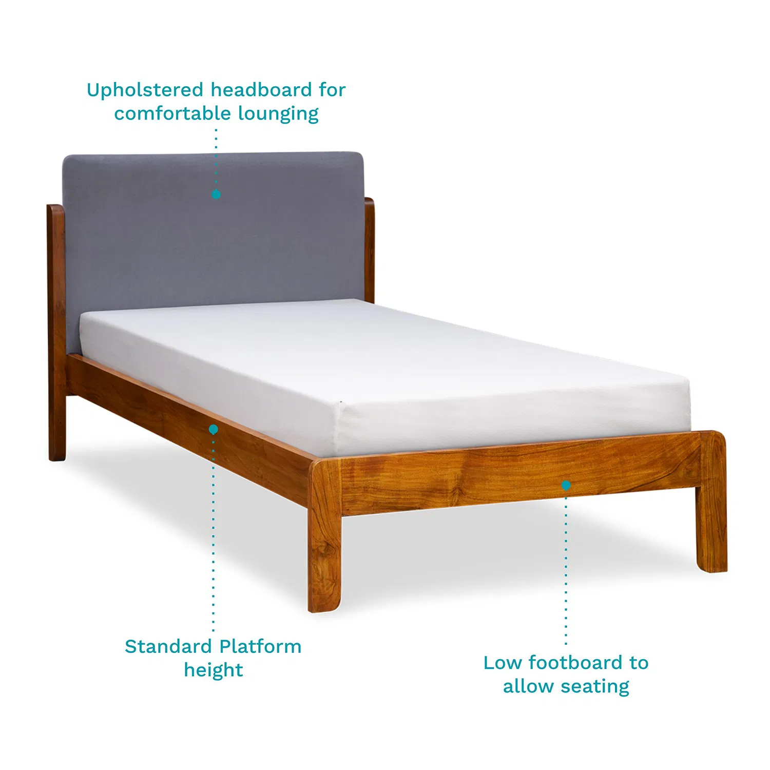 Furlenco | Vitello Solid Wood Single Bed – Holland Grey
