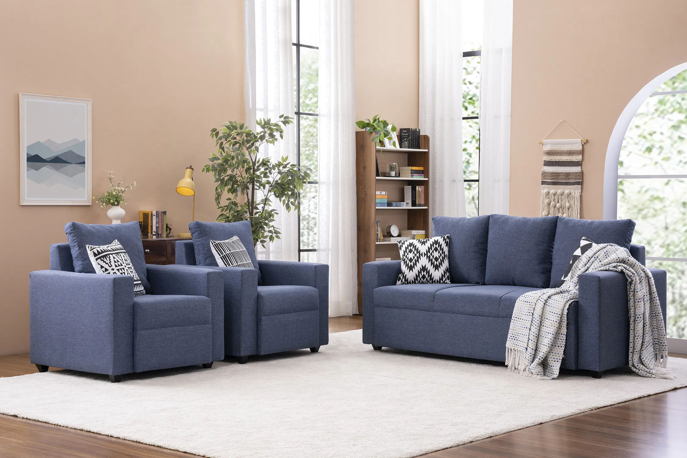 Furlenco | Vive Fabric 5 Seater Sofa in Grace Denim Color