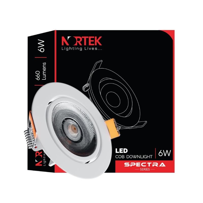 Nortex Cob Lights Nortek Spectra 6W Cob Downlight | Adjustable Design & Tiltable | LED Recessed Ceiling Light For Home, Bedroom, Living Room, Dining & Office | Cool White