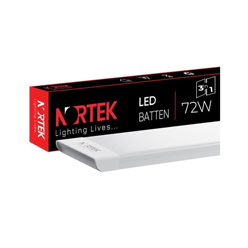 Nortex Tubelights Nortek Essenza 72 Watt 4 Feet 3 in 1 Colour Led Tube Light Batten for Home – Colour Changing Switch (Natural, Warm & Cool White Light), Fit for Wall, Ceiling or Hanging Clamps in any Room