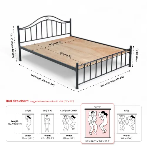 • Ideal mattress size (L x B): 72″ x 60″